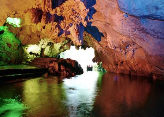 魚龍洞,與太平湖衣袂相連,距舉世聞名的黃山50公里,距佛教勝地九華山25公里,魚龍洞洞口如張開的鱷魚嘴,一泓碧水淙淙而出,終年不涸。該洞全長(zhǎng)5000余米,有清澈的地下河貫穿始終,初極窄,復(fù)開闊,氣勢(shì)磅礴,宏偉觀,洞內(nèi)奇石紛列,形態(tài)各異,或如蓮花綻放,或如玉樹臨風(fēng),或如眾僧朝圣,或如鐘鼓盤地,極為傳神,有東海、南海、北海、西海“四!,及蓮花宮、月宮、慶喜宮、鯉魚宮、玉寢宮、白鱔宮、點(diǎn)將臺(tái)、犀牛宮、藏樂宮、天宮、聚寶宮”十一宮“,2014年5月新增了走路進(jìn),坐船出項(xiàng)目,使得游人既可徒步瀏覽,又可乘木舟漫游,奇妙的景色與水聲、波光、燈影交織成一團(tuán),撲朔迷離,意趣橫生。