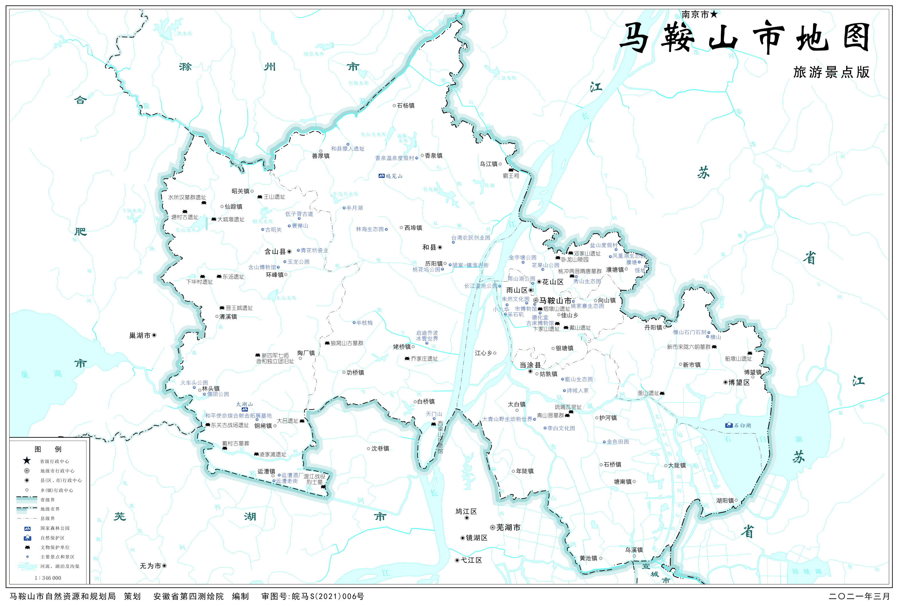 馬鞍山市轄3個(gè)市轄區(qū)、3個(gè)縣: