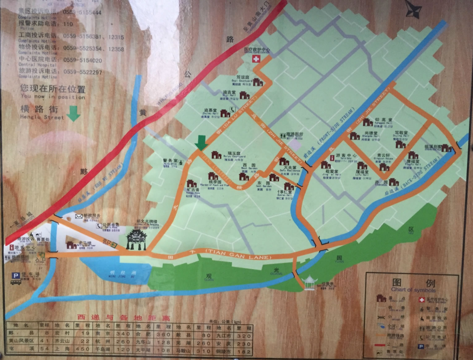 西遞、宏村古民居位于中國東部安徽省黟縣境內(nèi)的黃山風景區(qū)。宏村始建于南宋紹興年間(公元1190—1194年),原為汪姓聚居之地,綿延至今已有800余年。它背倚黃山余脈羊棧嶺、雷崗山等,地勢較高,經(jīng)常云蒸霞蔚,有時如濃墨重彩,有時似潑墨寫意,真好似一幅徐徐展開的山水長卷,因此被譽為“中國畫里的鄉(xiāng)村”。著名景點有南湖風光、南湖書院、月沼春曉、牛腸水圳、雙溪映碧、亭前大樹、雷崗夕照、樹人堂、明代祠堂樂敘堂等。南宋紹興年間,古宏村人為防火灌田,獨運匠心開仿生學之先河,建造出堪稱“中國一絕”的人工水系,是當今“建筑史上一大奇觀”:巍峨蒼翠的雷崗為牛首,參天古木是牛角,由東而西錯落有致的民居群宛如龐大的牛軀。引清泉為“牛腸”,經(jīng)村流入被稱為“牛胃”的月塘后,經(jīng)過濾流向村外被稱作是"牛肚"的南湖。人們還在繞村的河溪上先后架起了四座橋梁,作為牛腿。這種別出心裁的科學的村落水系設計,不僅為村民解決了消防用水,而且調(diào)節(jié)了氣溫,為居民生產(chǎn)、生活用水提供了方便,創(chuàng)造了一種"浣汲未防溪路遠,家家門前有清泉"的良好環(huán)境。