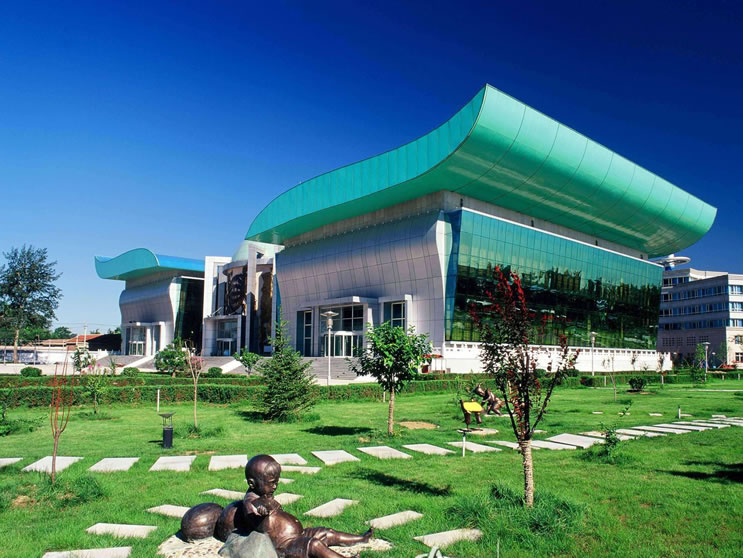 中國西瓜博物館坐落在北京市大興區(qū)龐各莊鎮(zhèn),總占地面積22000平方米,建筑面積4000多平方米,主建筑分上下兩層。一層中間序廳通頂21米,有6米高的煅銅壁雕,整個畫面蘊育著中國西瓜文化歷史的底蘊和西瓜科技快速發(fā)展的時代主題。東西兩個展廳展線全長400多米,以西瓜歷史、西瓜種植、西瓜科技、西瓜文化、北京大興西瓜節(jié)為主要的陳列版塊,展出圖片近900幅,蠟質(zhì)西瓜模型140余個,琥珀種子標(biāo)本200余種,雕塑模型7組,各類圖表18幅,書法美術(shù)藝術(shù)作品36件。構(gòu)成了具科學(xué)性、專業(yè)性、知識性、文化性、趣味性的陳列特征。二層?xùn)|側(cè)設(shè)可容納500人的1000平米多功能廳,可開展電教、培訓(xùn)、中小型頒獎、會議、演出等活動。二層西側(cè)1000平米的展覽大廳,可舉辦各類中小型臨時展覽。
