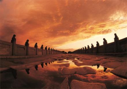 盧溝橋文化旅游區(qū),地處北京西南,西臨永定水,南望京港澳高速路,由盧溝橋、宛平城、中國人民抗日戰(zhàn)爭(zhēng)紀(jì)念雕塑園等景區(qū)組成,是一個(gè)集歷史、文化、藝術(shù)和革命傳統(tǒng)教育為一體的旅游觀光勝地。盧溝橋位于北京市西南15千米豐臺(tái)區(qū)永定河上,距廣安門10千米,是北京現(xiàn)存最古老的石造聯(lián)拱橋,始建于金大定29年(1189年),建成于金章宗明昌3年(1192年)。盧溝橋全長(zhǎng)266.5米,寬9.3米,下分11個(gè)券洞。橋身兩側(cè)共有石雕護(hù)欄望柱281根。柱頭上雕有伏臥的大小石獅共501只,形態(tài)各異,栩栩如生。
