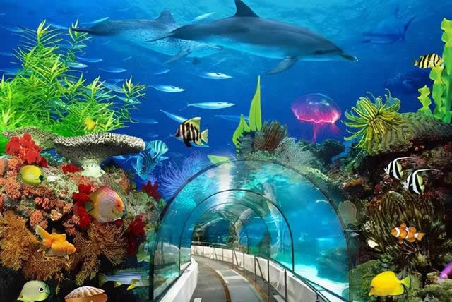 海洋生態(tài)展示——向游人展示海洋生物,包括植物、魚類、海洋哺乳類動(dòng)物等。