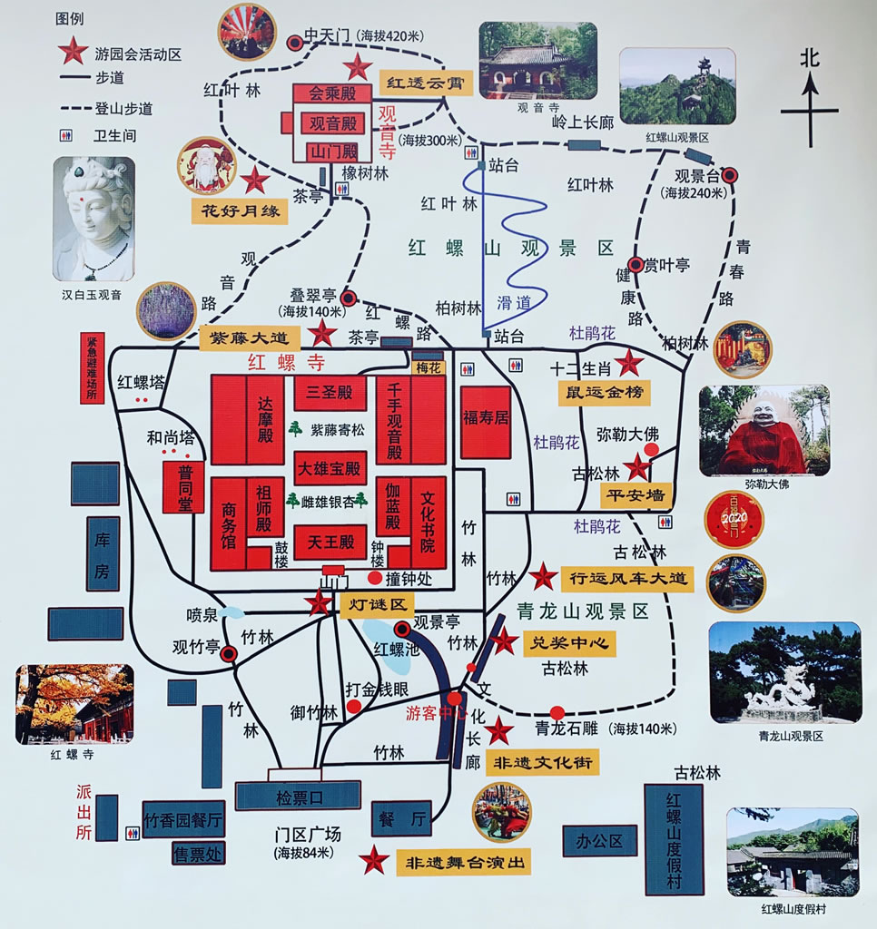 旅游區(qū)環(huán)境幽雅,古木參天,經(jīng)年常青,四季花香,人文景觀與自然景觀競秀。紫藤寄松、御竹林、雌雄銀杏號稱三絕景;寺西之珍珠泉,碧透似鏡,沸泡如珠,有神泉之稱;寺南之紅螺湖,水波蕩漾,溢彩流光,是一個劃船、游泳、垂釣的好去處。景區(qū)經(jīng)多年開發(fā)建設(shè),逐步形成了“吃、住、行、游、購、娛”于一體的、綜合配套設(shè)施完備的旅游度假風(fēng)景區(qū)。 |