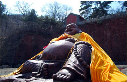 彌勒佛:千佛閣上坐神佛,納得天下福滿門。千年香樟木雕彌勒佛,作為戒臺(tái)寺唯一一尊露天佛,常得日月之光,納天地靈氣,立于千佛閣上修得萬佛之心,用萬世不變的歡喜笑顏,用大肚笑納天下事,也容載著天下人的希望。彌勒佛即未來佛,俗稱大肚彌勒,他強(qiáng)調(diào)要大度能容,不要計(jì)較人世間的是非憎愛。大肚彌勒寓神奇于平淡,示美好于丑拙,顯莊嚴(yán)于詼諧,現(xiàn)慈悲于揶揄,代表了中華民族寬容、和善、智慧、幽默、快樂的精神。香樟木質(zhì)地堅(jiān)硬,且具香氣,是明清時(shí)期宮廷木器三大主要用材之一。香樟木年份越久越珍貴,千年香樟木自然就成了可遇不可求的無價(jià)之寶。戒臺(tái)寺此件木雕大佛系為一整塊千年香樟木根雕,雕工精美,形態(tài)可鞠,盤腿而坐,袒胸露腹,自然形態(tài)惟妙惟肖。