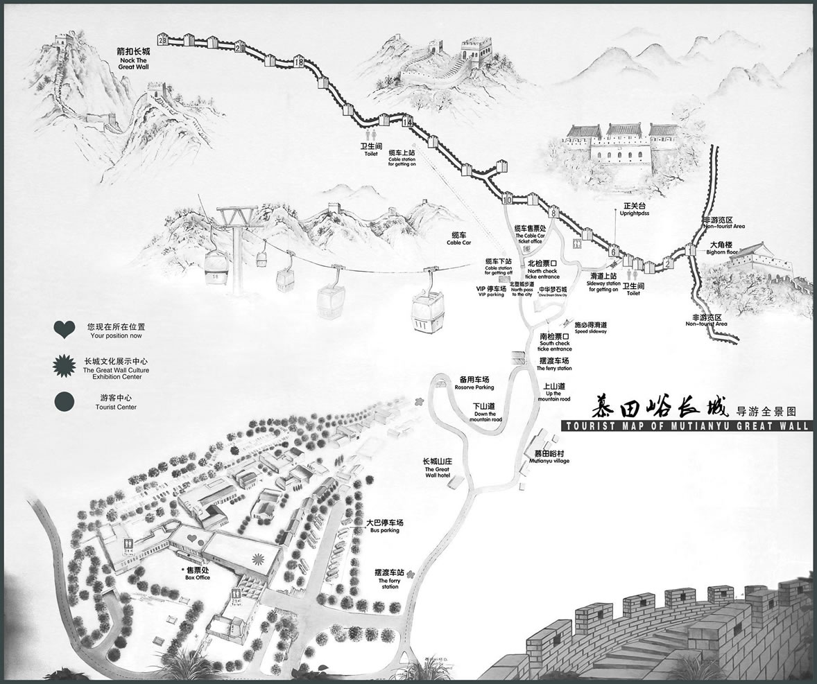 (四)長城擁有雙面垛口——其他段長城,多為長城外側(cè)一面建垛口墻,而慕田峪段長城卻兩面都為垛口墻,垛口墻即守城將士對(duì)敵作戰(zhàn)的掩體。兩面垛口墻,即意味著兩側(cè)同敵作戰(zhàn),可見慕田峪段長城在歷史上的重要戰(zhàn)略地位。