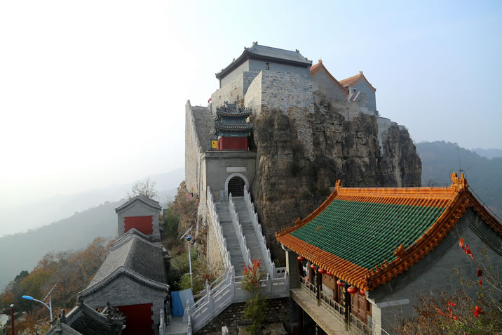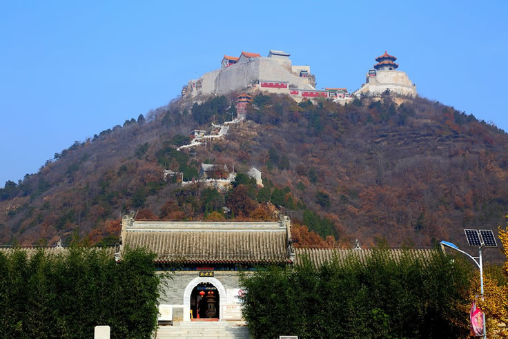 丫髻山景區(qū)位于北京市平谷區(qū)劉家店鎮(zhèn)北部,西北朝東南。丫髻山海拔雖僅高361米,但因其背靠燕山,面向平原,平地拔起,故而遠(yuǎn)望山峰兀立高聳。其山之頂凸起兩座峰巖,酷似女孩頭上梳的兩個(gè)發(fā)髻,故名“丫髻山”。