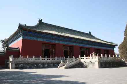 無(wú)梁殿:即齋宮正殿,建于明永樂(lè)十八年(1420年)。此殿因以磚拱承重,不用梁枋而得名;实圻M(jìn)出齋宮均在此舉行有關(guān)禮儀。現(xiàn)殿內(nèi)按乾隆時(shí)期原貌陳列,橫額“欽若昊天”為乾隆御筆,屏風(fēng)、寶座均為原物。