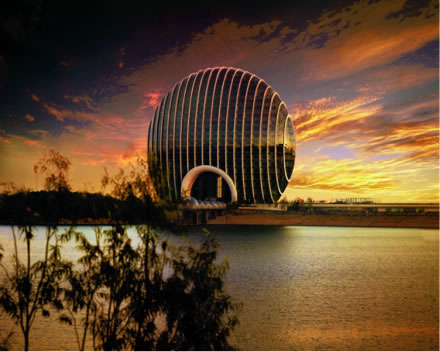 北京日出東方凱賓斯基酒店:建筑外形宛如一輪冉冉升起的太陽,象征著和諧統(tǒng)一,故名為日出東方酒店。從側面看,酒店建筑是扇貝的形狀,扇貝在中國文化里代表了財富;配合酒店建筑正面的圓形“旭日東升”寓意,也代表著中國的蓬勃發(fā)展。如果從空中俯瞰,酒店的裙樓形狀酷似“祥云”,也代表了中國文化中“彩云追日”的浪漫寓意。