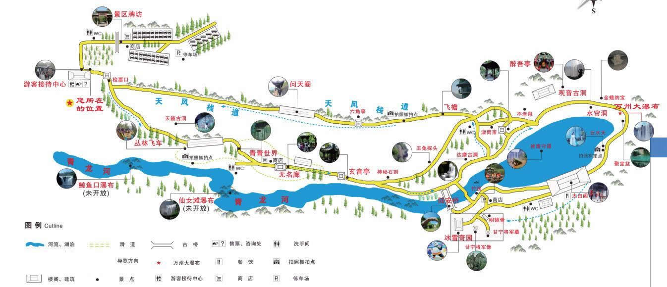 重慶萬州大瀑布群旅游區(qū)山青、水秀、瀑寬、洞奇、潭幽、湖大、虹美,共有大小景點(diǎn)50多個(gè)。大瀑布群呈三級(jí)梯級(jí)瀑布群,沿青龍河由上而下至瀼渡長(zhǎng)江口,分別有萬州大瀑布、仙女灘瀑布、鯨魚口瀑布,全長(zhǎng)約12千米,對(duì)外開放的是萬州大瀑布核心景區(qū)。還有甘寧將軍墓(衣冠冢)、甘寧將軍塑像、醉吟廊、何其芳故居等人文景點(diǎn)。