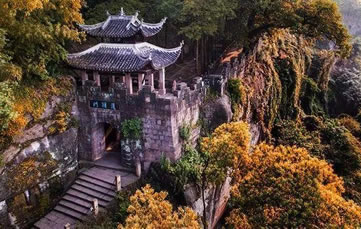 護(hù)國門重慶十大標(biāo)志性旅游景觀之一。護(hù)國門為釣魚城的標(biāo)志性建筑,位于城南第二道防線上,在釣魚城題刻的右側(cè)上部。在釣魚城8座城門中,護(hù)國門是規(guī)模最大的一道雄關(guān),城門洞高3.24米,寬2.45米,進(jìn)深6.42米。城臺(tái)上為重檐歇山頂式城樓,高7米。其樓北倚峭壁,南臨懸崖,旁有古榕交柯,蔚為壯觀。當(dāng)年,釣魚城軍民曾在護(hù)國門前面的峭壁上開鑿石穴,架梁鋪木,施以棧道出入。情況緊急之時(shí),可迅速地將橫梁上的木板抽掉,使其通道斷絕,猶如我國北方古城的城門吊橋。如今,棧道石穴猶存。在護(hù)國門平頂門道南壁和后門洞東側(cè),還保留有宋代的城門構(gòu)件和登城的石級。