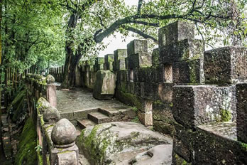 八角井位于西門天池附近竹林間。呈八角形,石砌,其建筑為宋代法式。井口直徑0.8米,井深20米,常年水深10米,從未枯竭。井腹為厚0.3米石料,層層錯(cuò)角相疊,似階梯,可供攀緣上下。