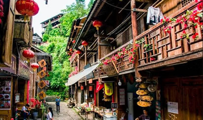 龔灘古鎮(zhèn)源自蜀漢,建置于唐,距今1800年的歷史。古鎮(zhèn)街道歷代修葺,至2005年總長(zhǎng)約3千米,皆以石板街、吊腳樓、坡屋面、小青瓦為風(fēng)貌特征。其中老街長(zhǎng)1.5千米,存寺廟、祠堂、古碼頭、古纖道、古梯道、古橋梁、古牌坊、古樹、古井、古碑石等。青石板街將古鎮(zhèn)按照不同的歷史背景、民族文化以商業(yè)業(yè)態(tài)形式布局為五段,以榨油、織布為特色的“油坊路”,以背夫腳夫文化為主題的“背夫路”,以西秦會(huì)館為代表建筑的“西秦路”,展示纖夫文化的“纖夫路”,以鹽商鹽號(hào)為特色的“老鹽路”。有50余堵別具一格的封火墻、200多個(gè)古樸幽靜的四合院、50多座形態(tài)各異的吊腳樓,獨(dú)具地方特色,是中國(guó)國(guó)內(nèi)保存完好且頗具規(guī)模的明清建筑群。