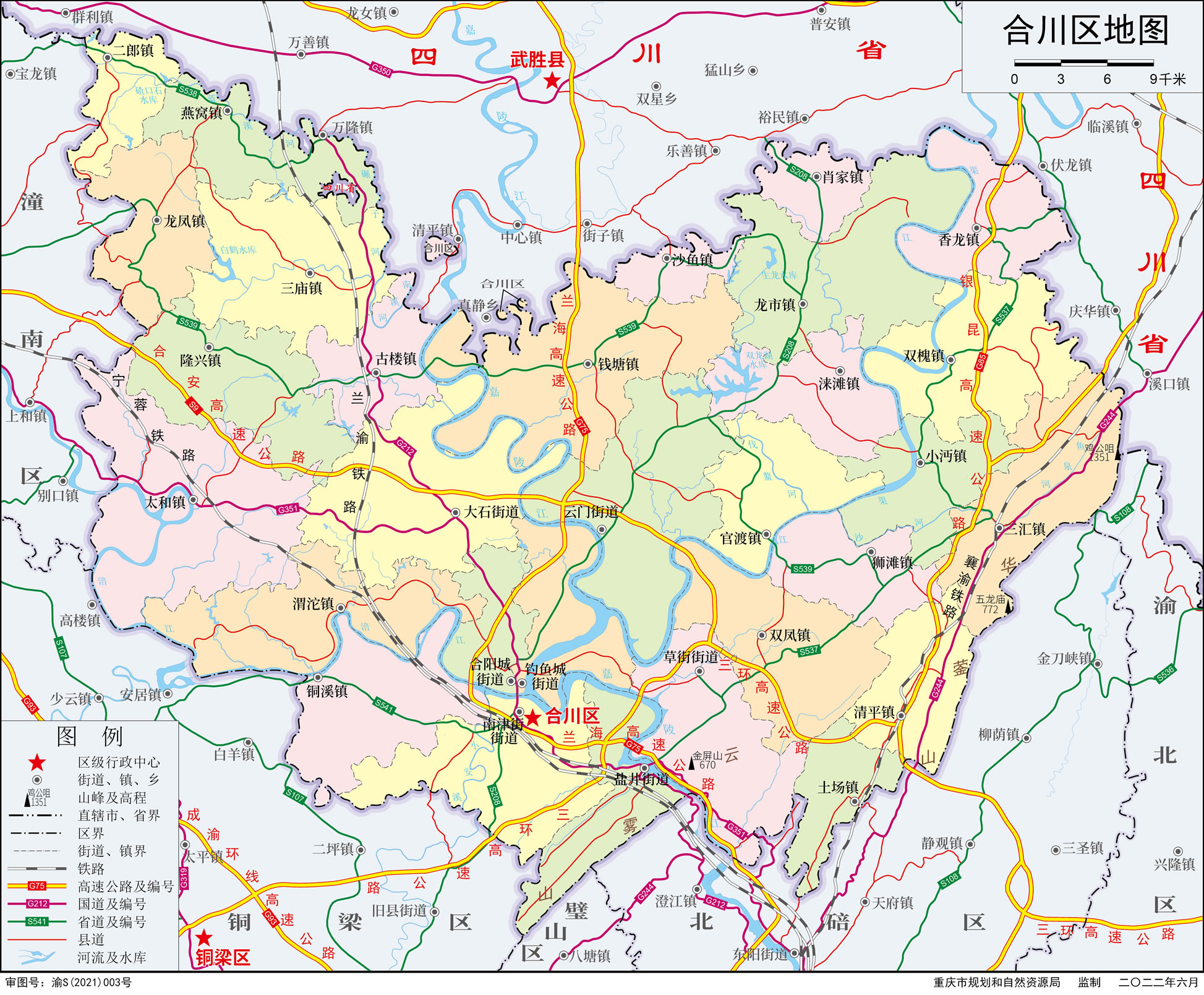 合川區(qū)轄7個(gè)街道、23個(gè)鎮(zhèn):