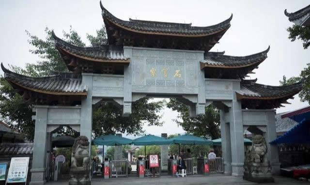 “江上明珠”牌坊位于連接新石寶鎮(zhèn)與石寶寨的大橋橋頭,牌坊上橫書“江上明珠”4個大字,為1992年時任中央政治局委員、國務(wù)院副總理田紀(jì)云在石寶寨調(diào)研時的題詞。