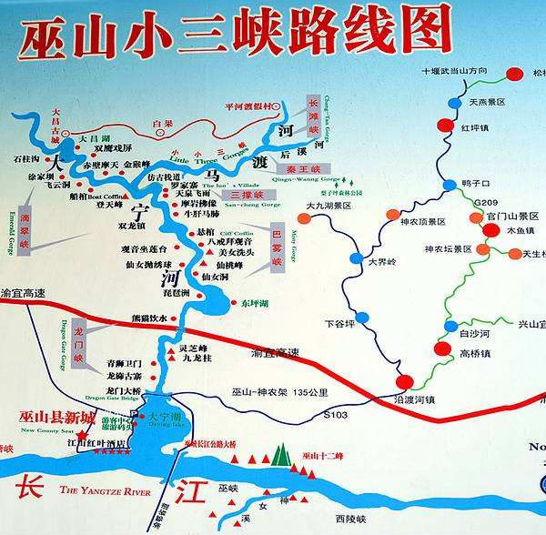 巫山小三峽·小小三峽景區(qū)全長65千米。有水峽景觀、峰巖景觀、洞穴景觀、動植物景觀、人文景觀、空間景觀。其中水體景觀包括水、泉、溪、潭、灘、簾瀑、卵石等多種類型,峰巖景觀包括峭壁、山峰、奇石、圖案、肌理、色彩等多種類型,洞穴景觀包括發(fā)育程度各異、大小各異、高度各異、風(fēng)格各異的眾多喀斯特溶洞、地下河。
