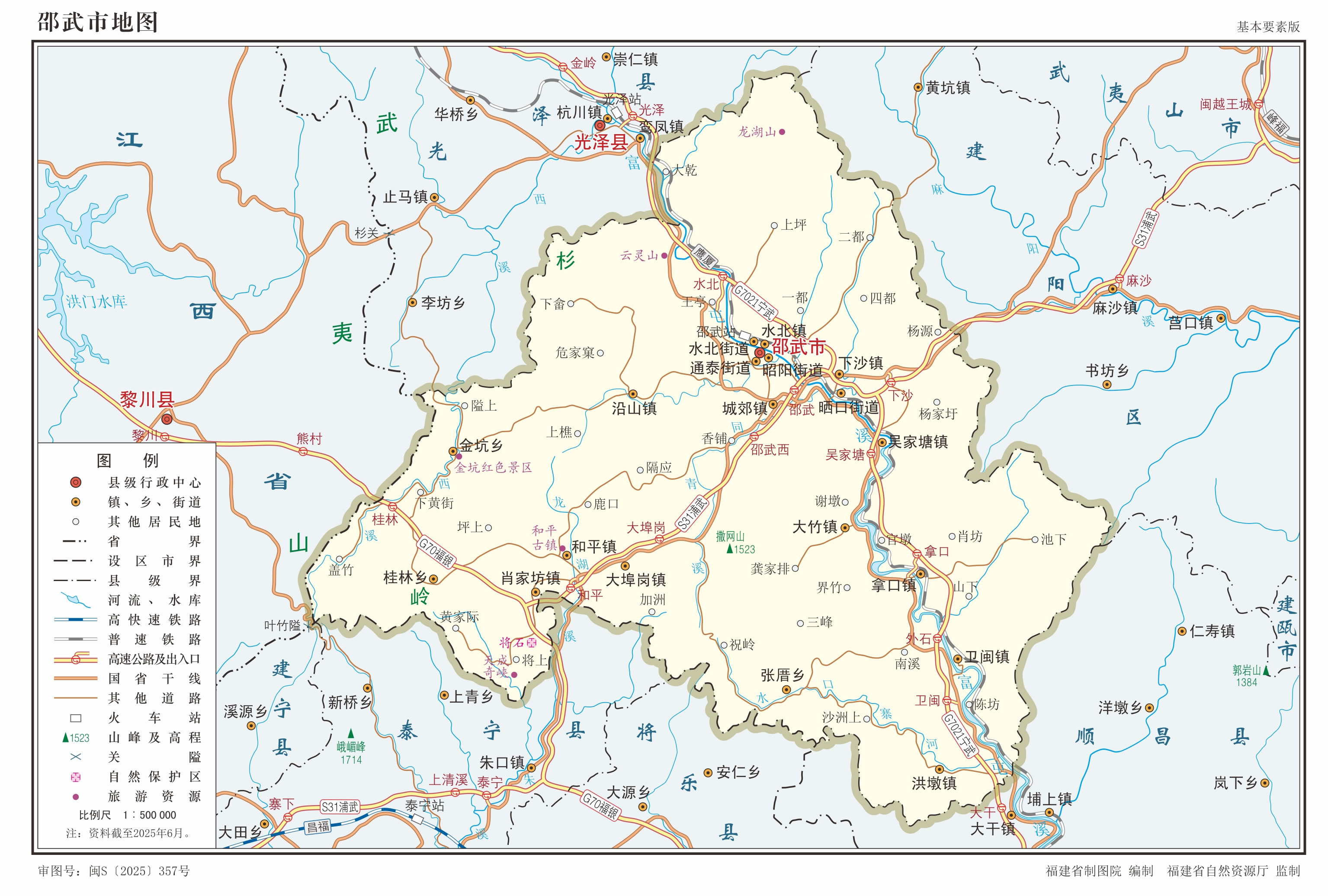 邵武市轄4個(gè)街道、12個(gè)鎮(zhèn)、3個(gè)鄉(xiāng):