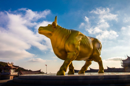 重修的祖殿東側(cè)小山坡上有頭福光萬丈的金牛,游客沿花紋元素登高臺階可得“福祿壽喜”祝福,金牛底座設(shè)置成轉(zhuǎn)盤,游客可根據(jù)自己的吉時轉(zhuǎn)動牛的方向,再圍繞金牛轉(zhuǎn)行,可完成“牛轉(zhuǎn)乾坤,人轉(zhuǎn)錢來”的祈福體驗(yàn)。