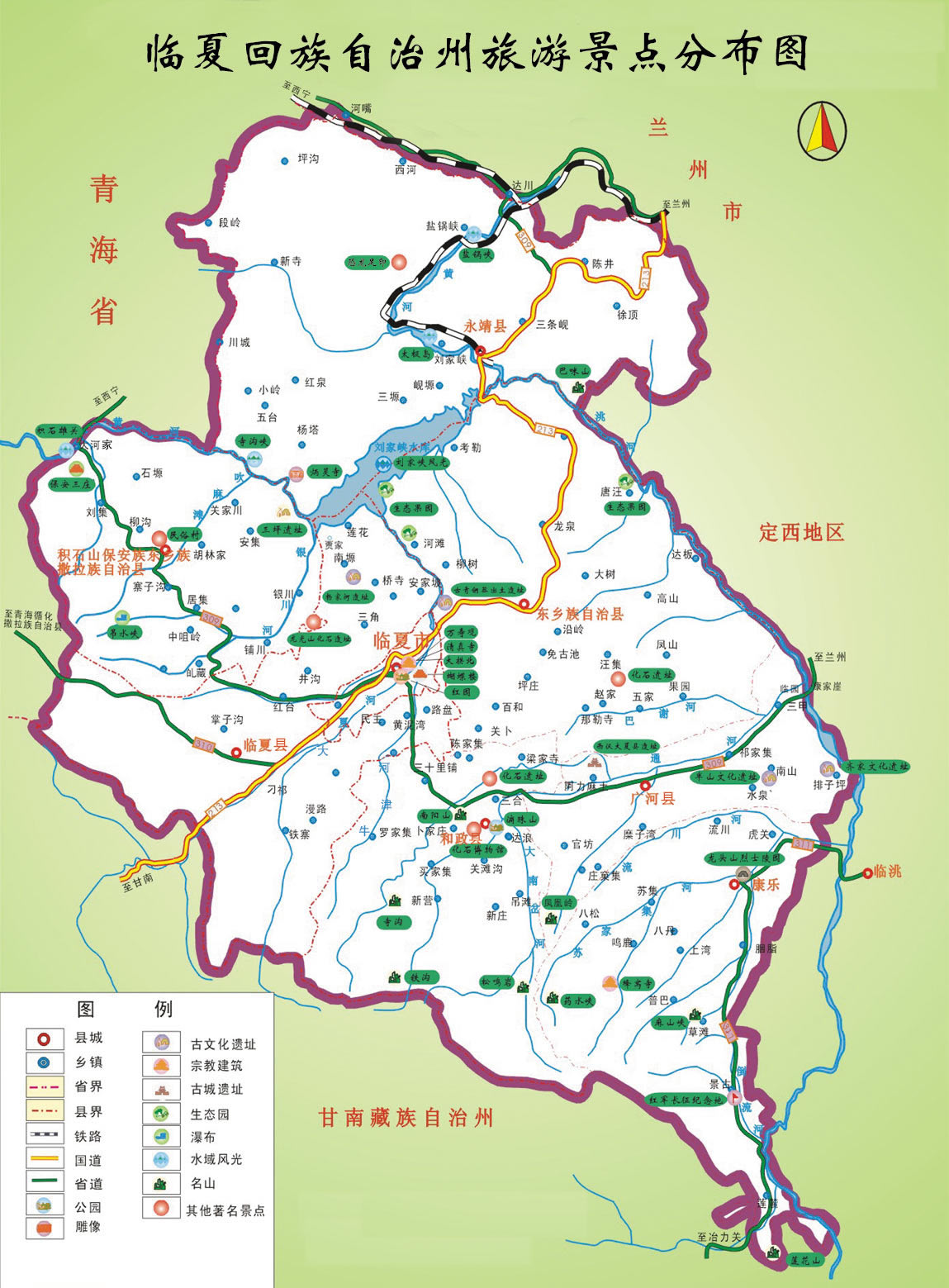 臨夏縣 面積1212.4平方千米,人口32.23萬(wàn),政府駐韓集鎮(zhèn),下轄9個(gè)鎮(zhèn)、16個(gè)鄉(xiāng)