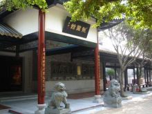 龍圖館極具嶺南古代建筑風(fēng)格。前后有廊,中間有天井,風(fēng)火山墻。館外館內(nèi)均有不少磚雕、木雕、泥塑、灰塑等,造工精巧,古樸典雅。大門外18棵羅漢松排列成行,象征包公出巡時的儀仗隊。旁邊是一排紅花紫薇,開花時節(jié),嫣紅翠綠,相映成趣。“龍圖館”橫匾下,有對聯(lián):“木石有靈再現(xiàn)包公清正事,匠師無憾巧傳百姓仰廉情”,“投硯鎮(zhèn)江流尚有遺待明古訓(xùn),蜚聲留宋典不曾枉法負(fù)平生”。既頌揚了包公輝煌政績,又突出了龍圖館的文化內(nèi)涵。