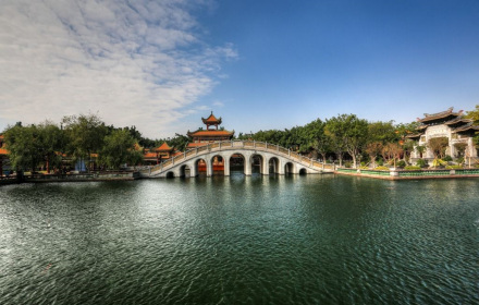 正門的白石仿古牌坊,雄偉巍峨,巧奪天工。園中的陶塑、瓷塑、磚雕、灰塑、石刻、木雕等藝術(shù)精品琳瑯滿目。驚世之作,當(dāng)數(shù)已列入大世界吉尼斯之最的瓷塑浮雕《清明上河圖》和巨幅磚雕《吐艷和鳴壁》。荔島中的聚家閣金碧輝煌,雍容華麗,閣內(nèi)供奉著萬世師表孔子銅像,供游人瞻仰。