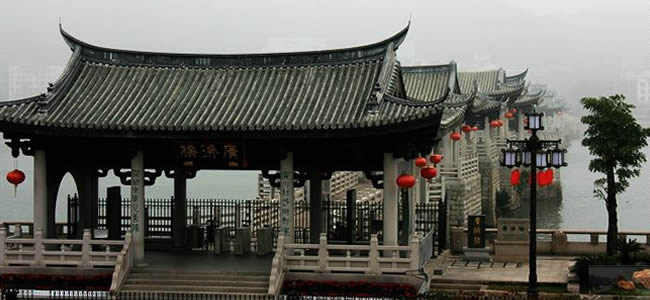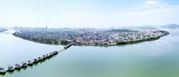 廣濟橋始建于南宋乾道七年(1171年);明朝嘉靖九年(公元1530年)形成“十八梭船廿四洲”的格局;解放前殘破不堪;1958年進(jìn)行加固維修,并拆除了十八梭船,改建為三孔鋼架及兩處高樁承臺式橋梁;2003年10月開始進(jìn)行全面維修,總體按明代風(fēng)格為修復(fù)依據(jù),功能定位為旅游觀光步行橋;2007年竣工。