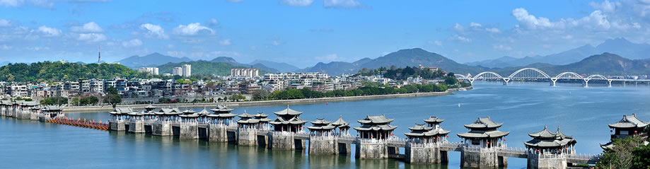 廣濟橋,即潮州廣濟橋,古稱康濟橋、丁侯橋、濟川橋,俗稱湘子橋,又稱潮州湘子橋,中國四大古橋之一,中國四大名橋之一 [16],被橋梁專家茅以升譽為“世界上最早的啟閉式橋梁”。廣濟橋位于廣東省潮州古城東門外,橫跨韓江,聯(lián)結(jié)東西兩岸,集梁橋、浮橋、拱橋于一體,為古代廣東通向閩浙交通要津,是潮州八景之一,是潮州文化的歷史地標(biāo)、全國重點文物保護(hù)單位,國家AAAA級景區(qū)。