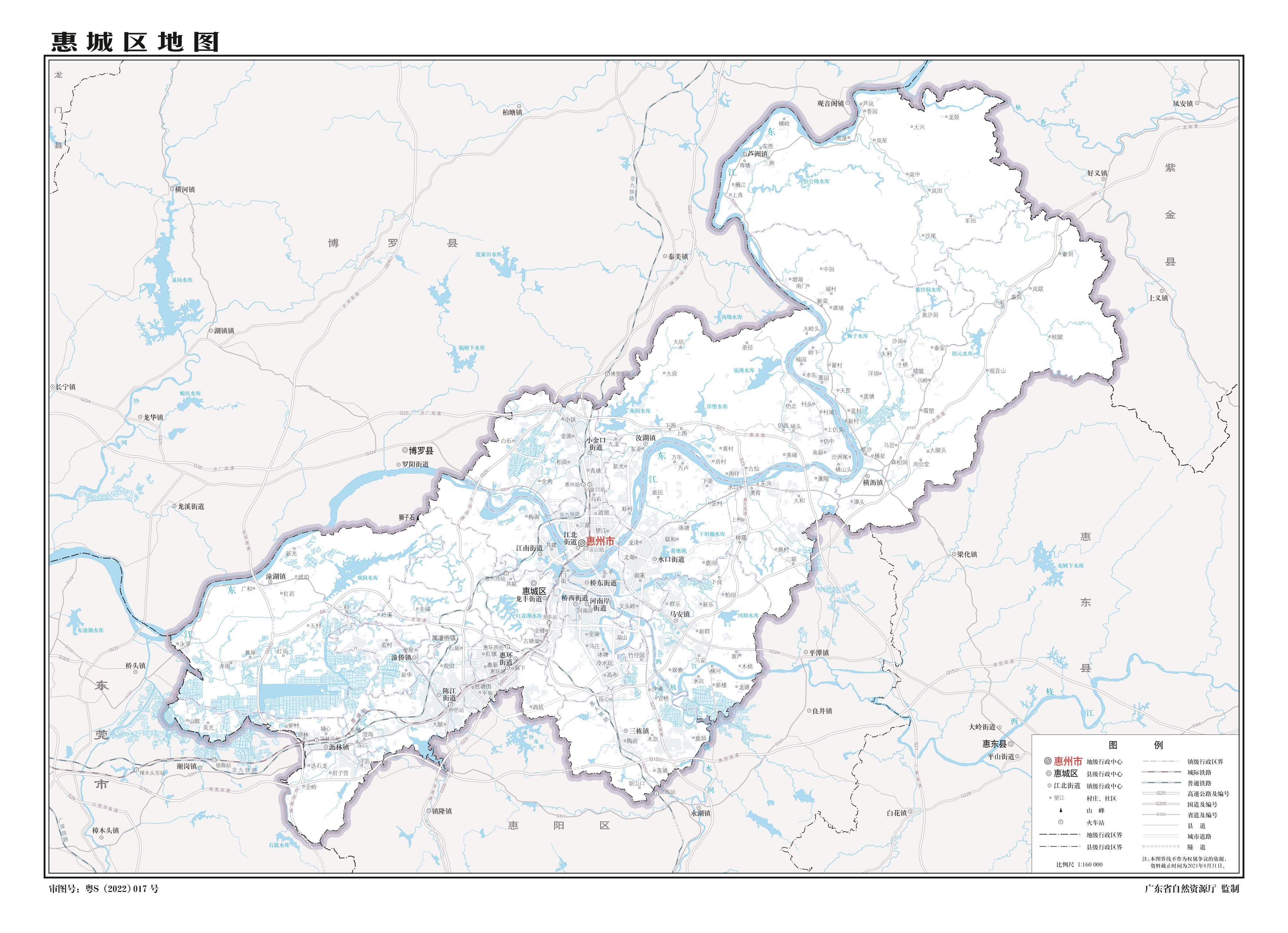 位置境域 惠城區(qū)位于廣東省東南部,地處粵東地區(qū)的交通要津。中心坐標為東經114°40′北緯23°08′,總面積1170.6平方公里,東至汕頭280多公里,西去廣州130公里,南往香港(深圳)80公里。