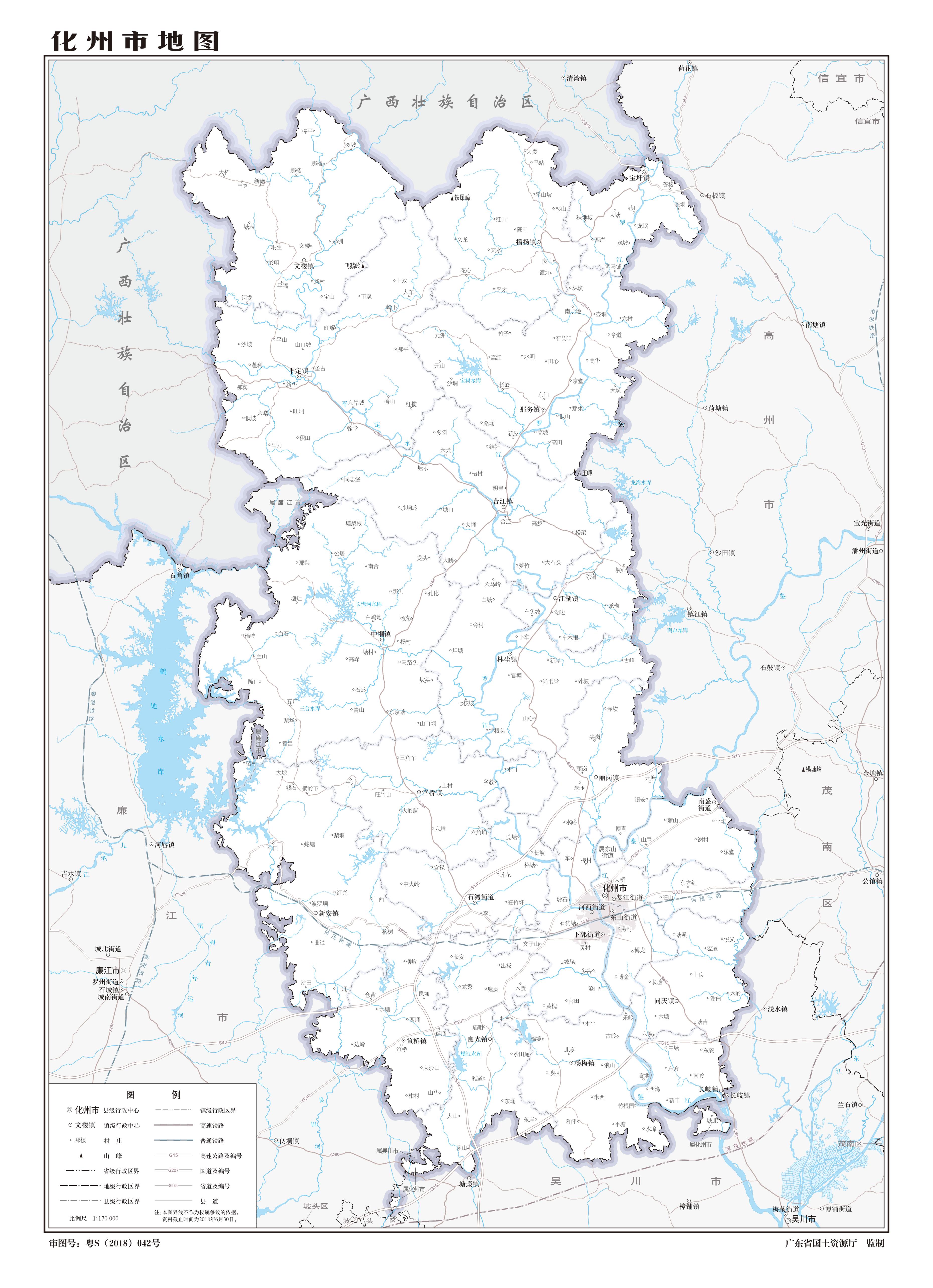 位置境域 化州市位于廣東省西南部,鑒江中游,介于東經(jīng)110°21′至 110°45′、北緯21°29′至22°13′之間,北與廣西北流縣交界,南與廣東省吳川市接壤,東與高州市和茂名市茂南區(qū)相連,西與廣西陸川縣及廣東省廉江市毗鄰。