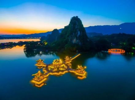 以不同的顏色交錯投射到景物上,勾畫出七星巖景區(qū)內(nèi)神秘幽雅的堤岸、小橋,花木,巖山與湖水交相輝映,使夜幕下的七星巖更加絢麗多彩;同時開辟了星湖夜游項目,為廣大市民和游客在夜色中游湖觀光提供了一個美麗的環(huán)境 ,再造出“第二星湖”。增加了許多新的景點(diǎn),如牌坊文化廣場,每當(dāng)夜幕降臨,霓虹閃耀,游人如鯽,當(dāng)露天音樂噴泉啟動之時,七星巖牌坊廣場更顯得壯觀,每逢周末或節(jié)假日,這里還可以欣賞一臺臺豐富多彩的文藝節(jié)目,真是令人如醉如癡。位于星巖東面的仙女湖,每當(dāng)太陽西下,還可以觀賞到天然奇觀--臥佛吞日。