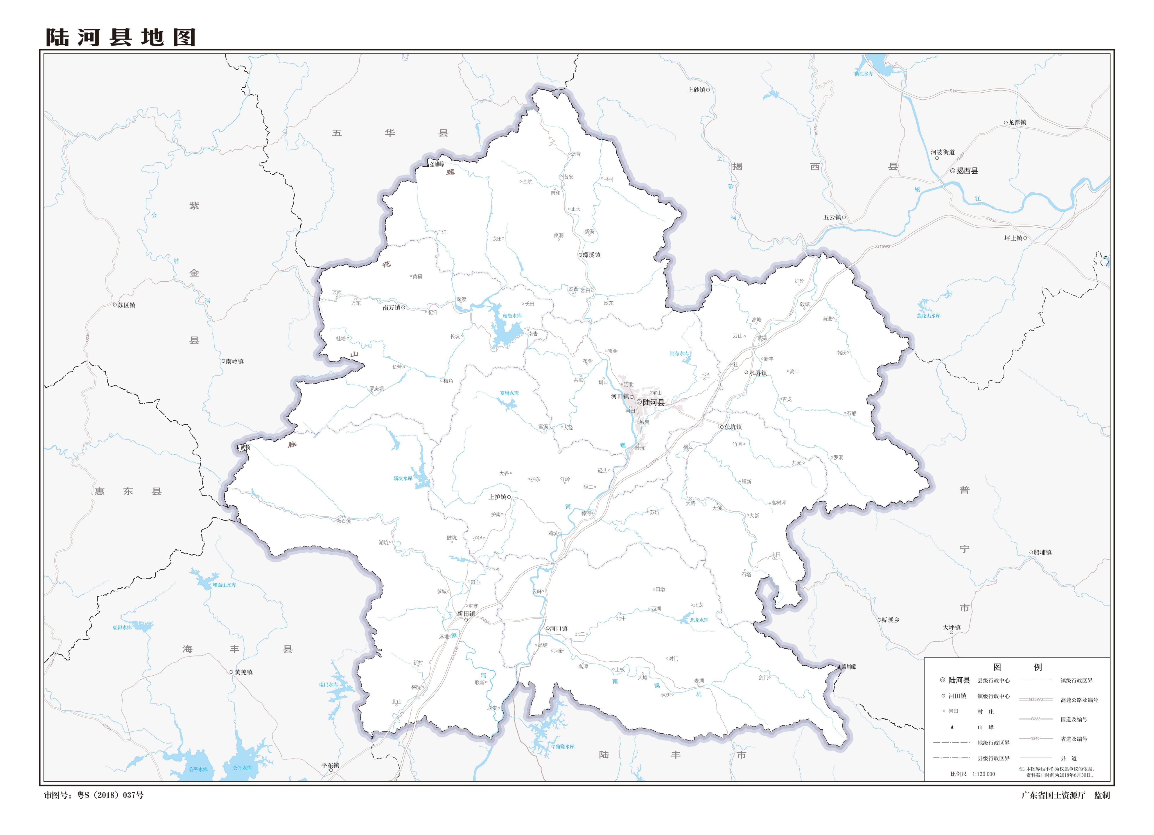 陸河縣轄8個鎮(zhèn):河田鎮(zhèn)、水唇鎮(zhèn)、河口鎮(zhèn)、新田鎮(zhèn)、上護(hù)鎮(zhèn)、螺溪鎮(zhèn)、東坑鎮(zhèn)、南萬鎮(zhèn)