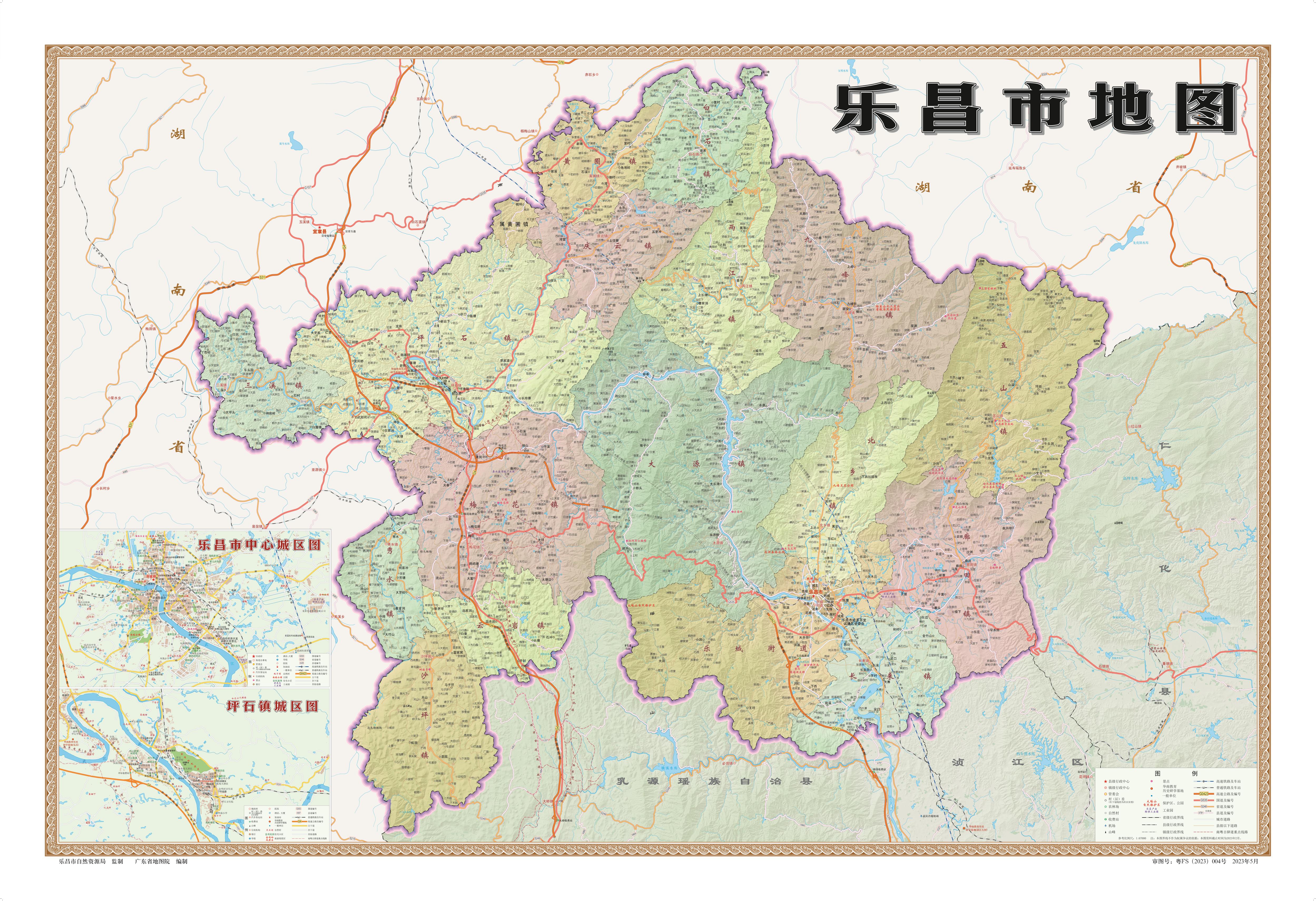 樂昌位于廣東省韶關市北部,粵北邊陲,毗鄰湖南,素有“廣東北大門”之稱。北與湖南省宜章、汝城兩縣交界,市區(qū)距韶關市區(qū)50公里,距廣州250公里。總面積2421平方千米,人口52萬(2008年)。市人民政府駐樂城街道,其中城鎮(zhèn)人口25.64萬人。