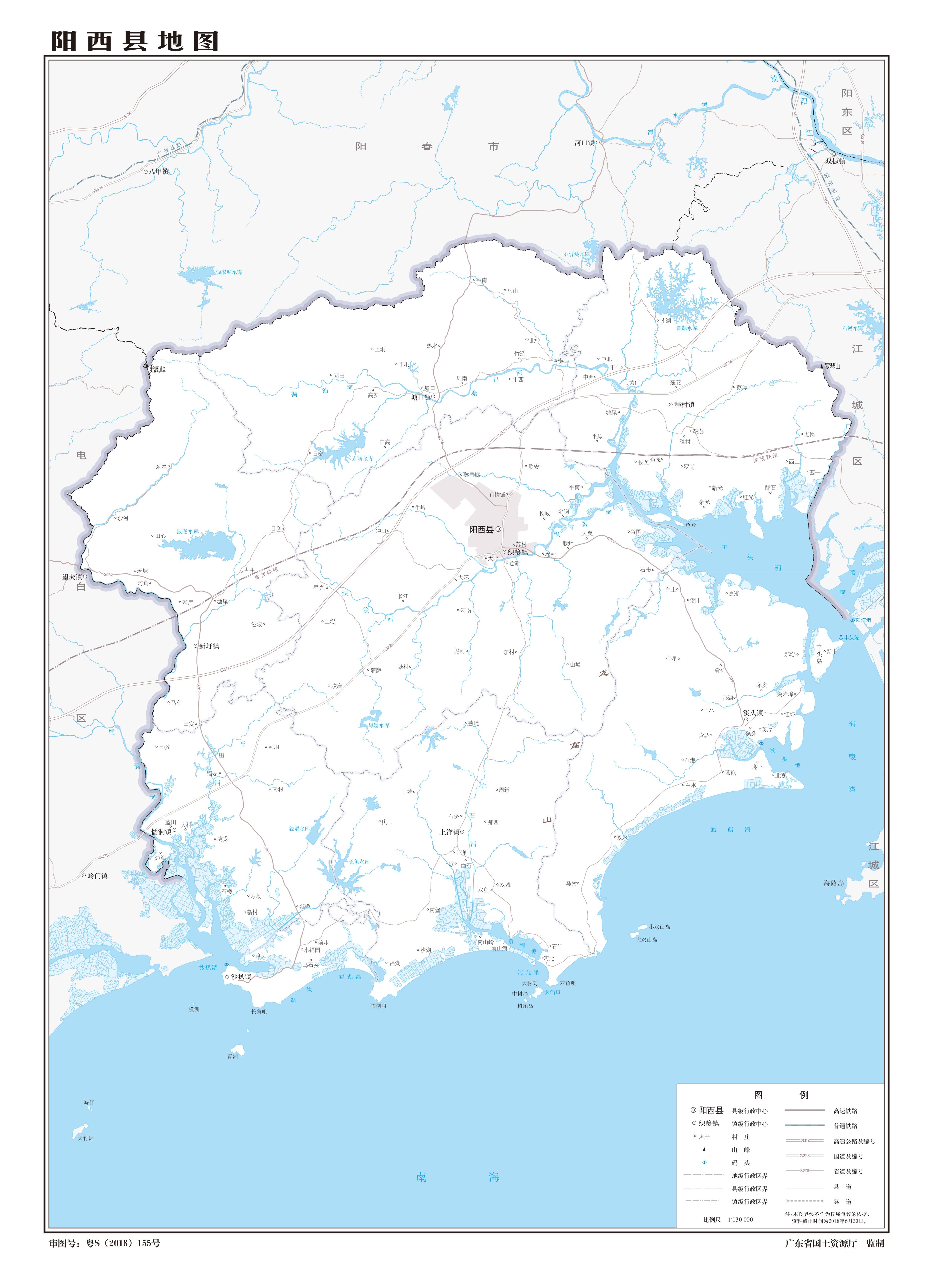 位置境域 陽(yáng)西縣位于廣東省西南部沿海,地處東經(jīng)111°22'28"至111°48'43"、北緯21°29'至21°55′。東接江城區(qū)、陽(yáng)東縣,北鄰陽(yáng)春市,西與電白區(qū)交界,南臨南海。陽(yáng)西縣總面積1455平方千米。