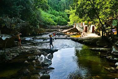 抵達(dá)景區(qū)后,乘木船游覽龍珠湖(自費(fèi),10元/人;30分鐘);到餐館吃中餐(1小時(shí));然后在竹林、亞熱帶風(fēng)情林漫步,吸氧,感受原始森林的清新氣息(20分鐘)到了石橋,游人可照相留影、觀山溪野魚(15分鐘)再走10分鐘,即可到達(dá)第一個(gè)山泉沐浴點(diǎn)仙女池,傳說其水能使肌膚更加細(xì)膩嫩滑,最適合女性沐浴。(40分鐘)。