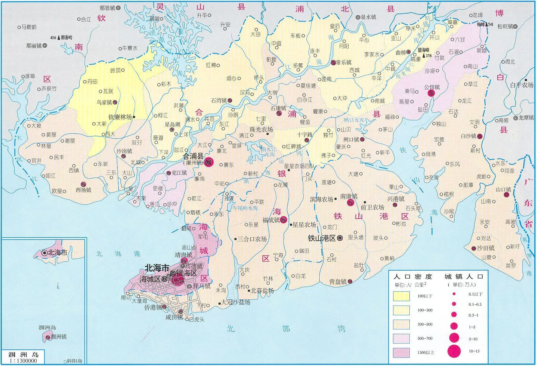 北海市轄3個區(qū)、1個縣:
