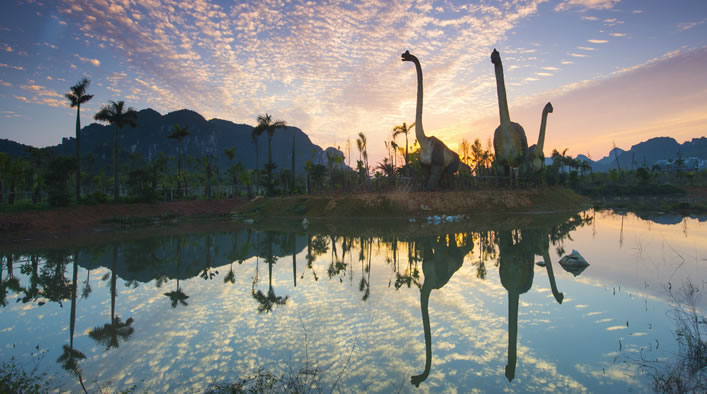 龍谷灣恐龍主題公園是國(guó)家AAAA級(jí)旅游景區(qū),位于扶綏縣上龍大道999號(hào),距南友高速公路扶綏出口3公里。占地面積3000畝,是龍谷灣旅游休閑度假區(qū)的一期工程,于2017年元旦建成開(kāi)業(yè)。公園由遠(yuǎn)古呼喚、多媒體體驗(yàn)中心、動(dòng)感地帶、兒童王國(guó)、恐龍谷等板塊組成,是集科普研學(xué)、旅游觀光、游樂(lè)體驗(yàn)為一體的亞洲最大的恐龍主題公園。龍谷灣旅游休閑度假區(qū)瞄準(zhǔn)“3.5小時(shí)經(jīng)濟(jì)圈”休閑度假市場(chǎng),突出恐龍文化和壯族民俗文化,規(guī)劃建設(shè)主題公園、特色小鎮(zhèn)、商業(yè)綜合體、田園綜合體、康養(yǎng)旅居城、體育旅游、智慧旅游、國(guó)際教育、民宿、汽車(chē)旅游營(yíng)地等,形成龍谷灣恐龍公園、國(guó)際慢生活商業(yè)中心、錦繡八桂田園綜合體、國(guó)際酷玩休閑世界、國(guó)際共享康養(yǎng)旅居城五大區(qū)域。
