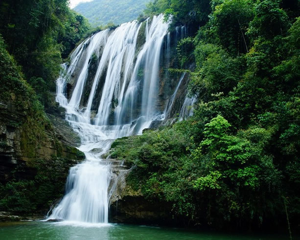 牛角寨瀑布群景區(qū)坐落在環(huán)江環(huán)江毛南族自治縣中部的明倫鎮(zhèn),離縣城42公里,離貴州省荔波縣小七孔景區(qū)也很近。景區(qū)占地10多平方公里,屬喀斯特地貌。景區(qū)內(nèi)叢峰疊起連綿、森林繁茂、山幽谷深、溪流潺潺,瀑布成群、潭池如境,是集峰叢、峽谷、溪流、瀑布、潭池為一體的自然生態(tài)景觀。瀑布群中最大的七仙女瀑布,寬60米高50米,銀白色的瀑布流水飄然瀉下,形似仙女在空中裙帶飄逸,雋永秀麗,被譽為"廣西的黃果樹"。景區(qū)內(nèi)有聞名區(qū)內(nèi)外的"五香"(香豬、香牛、香菇、香鴨、香粳)美食、特產(chǎn)。牛角寨瀑布群景區(qū)是康體養(yǎng)生、休閑度假、觀光游憩之圣地!