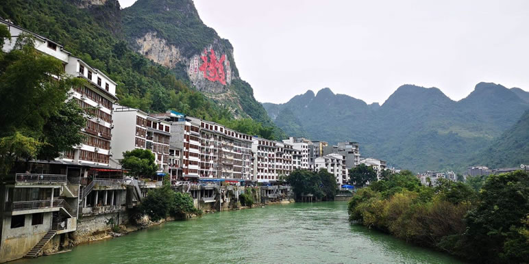 甲篆村在巴馬縣西北19千米處,甲篆鄉(xiāng)政府駐地,巴馬至鳳山公路經(jīng)此,盤陽河從距村址約2千米烈屯漠齋山的百鳥洞奔流而出,河灣斷續(xù),秀水瀠洄,兩岸奇峰峻巒,村屯錯(cuò)落。甲篆村美景曾令到此探索壽鄉(xiāng)之秘的國外專家考察隊(duì)和區(qū)內(nèi)外到此體驗(yàn)生活的文藝家們嘆為觀止,因而素享“小桂林”之美稱。坡開村還盛產(chǎn)油魚,這種體肥肉嫩身骨細(xì)軟,煎時(shí)香油四溢。
