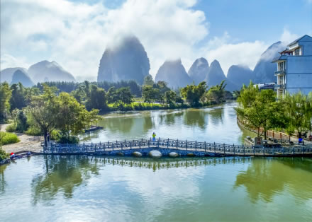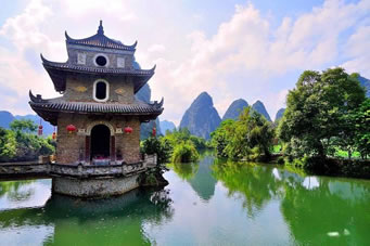 文昌閣下銜鵝泉河,背椅火焰峰,是廣西旅游最具代表性的文化地標(biāo)之一,是游客來(lái)到靖西必去的攝影打卡圣地。