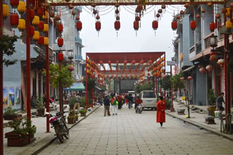 舊州主街長(zhǎng)度約三百米,是舊州古鎮(zhèn)的主干道,也是本地民間各類民俗慶典活動(dòng)的主要舉辦場(chǎng)地——如每年大年初一的舞龍舞獅、二月初二龍?zhí)ь^、八月初二的祭神長(zhǎng)桌宴等。主街繡球陣共由99根紅柱,666個(gè)繡球組成,寓為“長(zhǎng)長(zhǎng)久久,六六大順”!