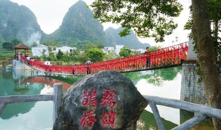 “情定舊州,霧鎖鵲橋”的典故源于“水?dāng)r火焰峰”的民間傳說(shuō)——相傳,舊州古時(shí)候有一座老藤橋,是村民外出勞作的必經(jīng)之路,常有喜鵲聚集在兩旁的樹(shù)上嬉鬧。