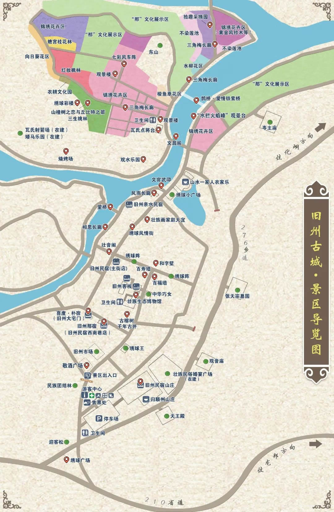 早在一千多年前,舊州古城就作為歸順州(靖西古名)的州府,一直是中越邊境線上重要的政治門(mén)戶、經(jīng)貿(mào)樞紐、文化中心和軍事要塞,是當(dāng)之無(wú)愧的“千年古城”,也是名揚(yáng)四海的抗倭民族巾幗英雄瓦氏夫人的故鄉(xiāng)。舊州風(fēng)光旖旎,景區(qū)的文物勝跡甚豐,有文昌閣、瓦氏夫人點(diǎn)將臺(tái)、繡球風(fēng)情街、壯音閣、千畝錦繡花海、望橋、明清時(shí)代建筑岑氏土司廟、張?zhí)熳谀箞@等景觀。舊州風(fēng)光是靖西田園風(fēng)光的縮影,吸納了靖西近千年古樸典雅的文化底蘊(yùn),將自然景觀和人文薈萃融為一體。