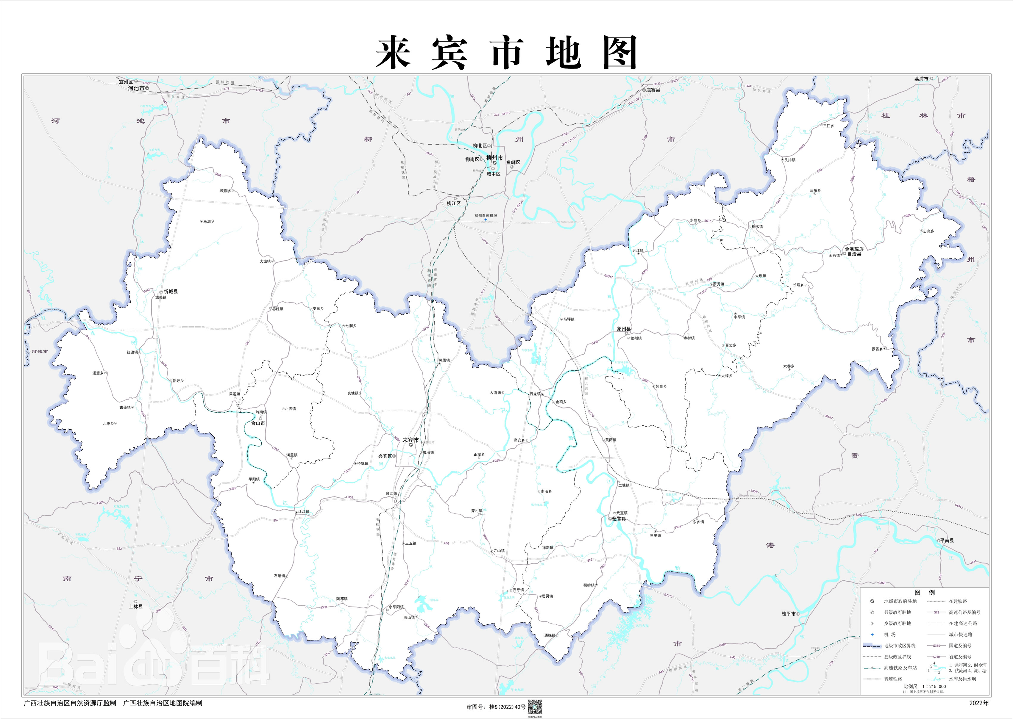 來賓市轄1個市轄區(qū)、4個縣,代管1個縣級市: