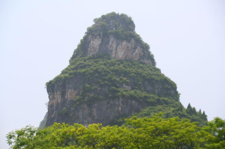 螺獅山,在漓江西岸,石山紋理自下螺旋而上,直至山頂,整座山酷似一個大青螺。郭沫若詩中有“青螺負雨壓長河”之句,在山下有螺螄巖,河口開闊明亮,明代建騰蛟庵,由三寶殿、魁星樓組成,清代重修。洞前香爐石,形狀酷肖。洞內(nèi)有三顆螺螄石,一白如雪,一綠如玉,一黑如漆,巖內(nèi)有摩崖碑文,記載巖的由來和附近景色。