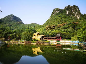 劉三姐大觀園原名桂林劉三姐景觀園,位于桂林城區(qū)西部獅子巖,坐落在風景秀麗的桃花江畔,東靠西山,西望甲山,前臨漓江的支流桃花江。景區(qū)以壯族歌仙劉三姐命名,是一座展示劉三姐文化及廣西少數(shù)民族文化經(jīng)典的主題游園,在這里游客可以零距離領略和體驗劉三姐文化及廣西少數(shù)民族文化精粹和樂趣。園外山清水秀,倒影如畫,有桂林古八景“西峰夕照”、桂林續(xù)八景“陽江秋月”;園內(nèi)亭臺樓榭、峰峻洞幽,有桂林生態(tài)樂園之最百鳥園;有電影《劉三姐》的壯樓、莫府。