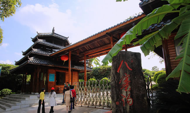 “九寨溝太遠,八寨溝就在身邊。”隨著這句廣告詞風靡廣西,欽北區(qū)八寨溝旅游風景區(qū)吸引了越來越多的八方游客前來觀光旅游。 八寨溝旅游區(qū)位于欽州市西北五十多公里的十萬大山腹地的貴臺鎮(zhèn)境內,總面積三萬多畝。八寨溝是亞熱帶雨林、竹林,山澗、瀑布清澈生動,大小泉潭分布有致,砂頁巖形態(tài)奇特,物種植被豐富,是集探險、獵奇、游泳、休閑度假、避暑、觀光的旅游勝地。
