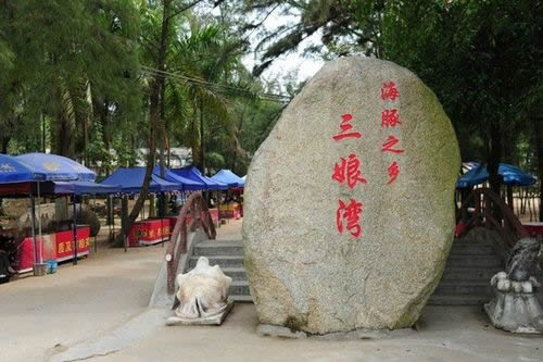 三娘灣景區(qū)以碧海、沙灘、奇石、綠林、漁船、漁村、海潮、中華白海豚而著稱,擁有“中華白海豚之鄉(xiāng)”美稱,由三娘石、母豬石、烏雷嶺、威德寺等景觀景點(diǎn)組成,是著名電影《海霞》的外景拍攝地和中央電視臺(tái)MTV《灣灣歌》和20集電視劇《海藤花》的拍攝基地。