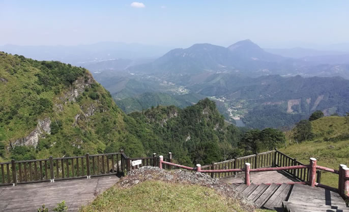 天龍頂國家山地公園位于岑溪市南渡鎮(zhèn),占地面積15平方千米。景區(qū)主峰天龍頂海拔1221米,相對高度221米,屬云開大山山脈的主峰。景區(qū)內(nèi)海拔高于1000米以上的山峰還有石豹頂、公婆頂、湖廣頂?shù)人淖椒。景區(qū)的自然資源具有多樣性,景區(qū)內(nèi)有高山湖泊、原始森林、溝壑峽谷、溪谷瀑布群、海拔1000米之上的高山草甸、海拔1200多米的丹霞山峰、延綿近數(shù)十里的斷層崖壁等等,形成了一個(gè)具有旅游觀光、休閑度假、戶外運(yùn)動(dòng)等多功能的復(fù)合型景區(qū)。同時(shí),天龍頂國家山地公園也是一個(gè)純天然自然氧吧,空氣中負(fù)離子含量高達(dá)35000個(gè)/立方米。