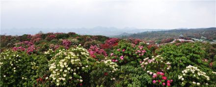 初步查明,百里杜鵑風景區(qū)有馬纓杜鵑、大白花杜鵑、水紅杜鵑、露珠杜鵑等41種,占世界杜鵑花5個亞屬中的全部;ㄉ鄻樱k爛生輝。每年3月到5月次第開放,百里花山色彩繽紛,猶如廣袤的錦緞華章鋪山蓋嶺,百態(tài)千姿。被譽為“地球彩帶、世界花園”。