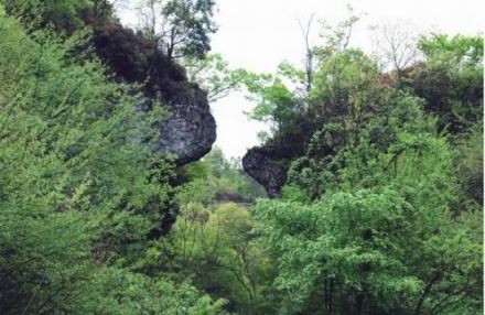 “千年一吻”景點,又叫“對嘴巖”!扒暌晃恰庇蓛勺嗡朴H吻的山巖構成,左巖高大、右?guī)r矮小。兩巖底下形成深谷,谷內幽深,冬暖夏涼,與周圍的杜鵑花相輝映。一年四季,谷外景色或姹紫嫣紅或冰封雪蓋,不過任憑谷外寒來暑往,景色多變,谷內始終保持迷人的春色。