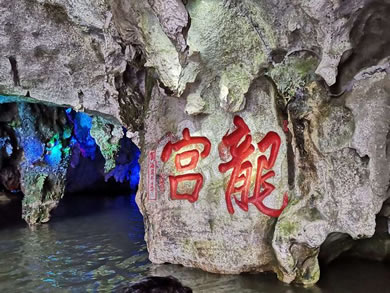 龍宮水溶洞長達(dá)15公里,為國內(nèi)之冠。景區(qū)對外開放了二段,長1260米,洞內(nèi)鐘乳千姿百態(tài),與北方溶洞相比更顯細(xì)致與精巧,與南方溶洞相比更顯神秘與奇特,其洞廳構(gòu)造宛如神話中的龍王宮殿!暗叵吕旖⑻焐鲜帧钡娜芏达L(fēng)景價(jià)值,是目前國內(nèi)已發(fā)現(xiàn)的其它同類型景區(qū)中無以比擬的,大詩人艾青稱“大自然的大奇跡”,國畫大師劉海粟譽(yù)“天下奇觀”,全國溶洞專家感嘆“覽龍宮知天下水洞,蕩輕舟臨人間仙境”!吧讲辉诟撸邢蓜t名,水不在深,有龍則靈”,龍宮就是這樣的人間天堂。